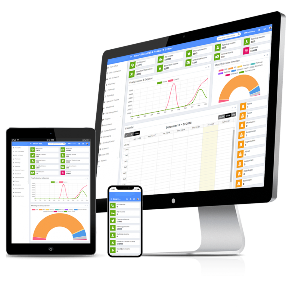 Our Hospital Management System is Complete Hospital Automation Software that suites to almost every hospital or medical institution from patient OPD visits to Operation to Pathology Test etc. It includes 25+ modules with 8 inbuilt users (Super Admin, Admin, Doctor, Accountant, Pathologist, Radiologist, Receptionist and Patient) panel. It is complete hospital management system including OPD, IPD, Pathology, HR, Diagnostic, Bill, Account, and All kinds of related report. It has power full pharmacy management module also. It is has zoom consultation facility for doctor and patient.